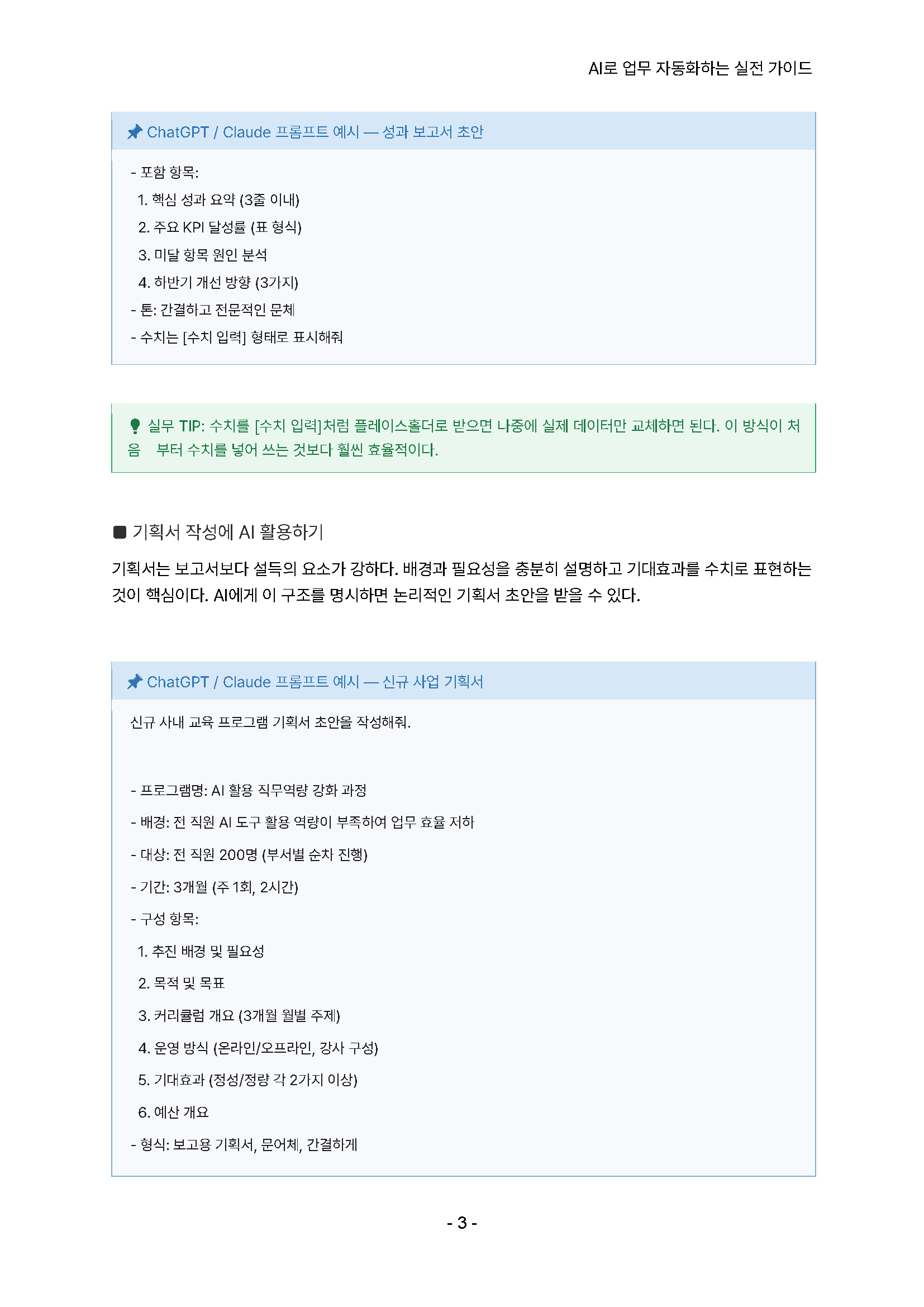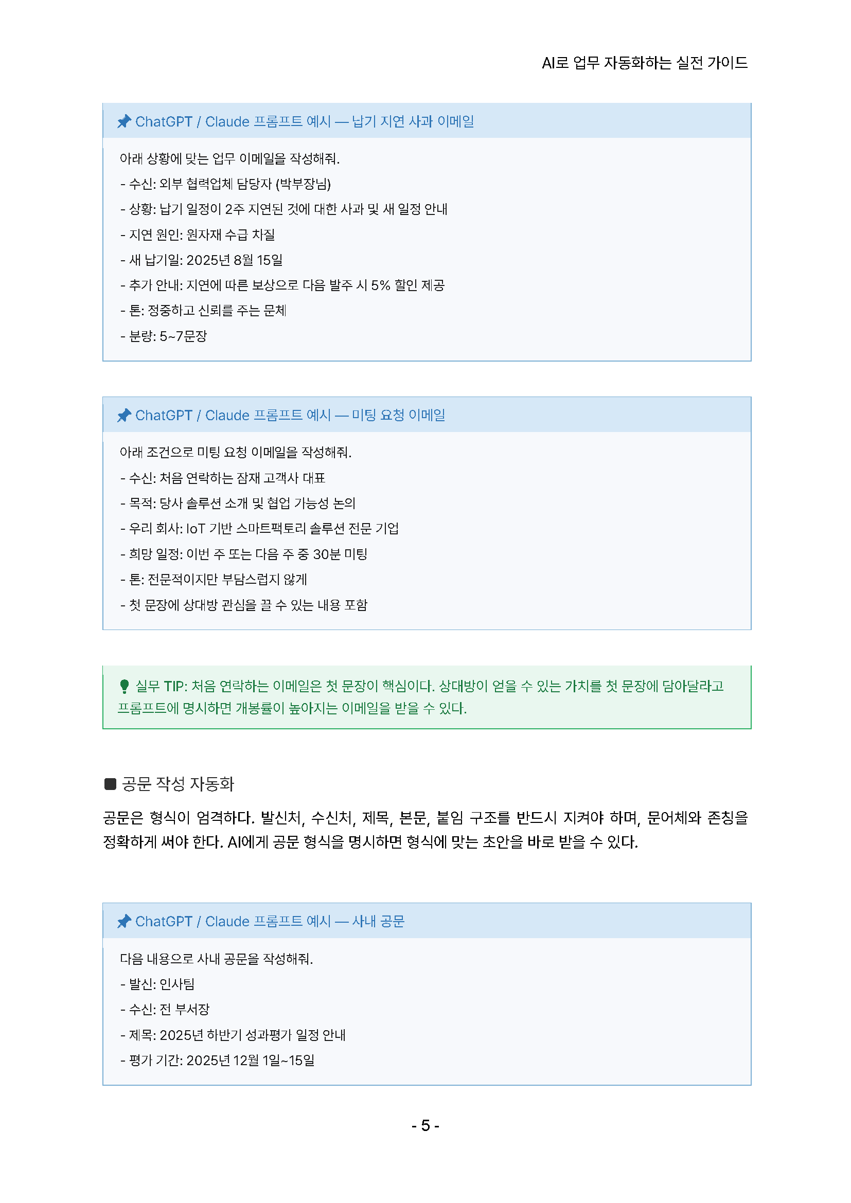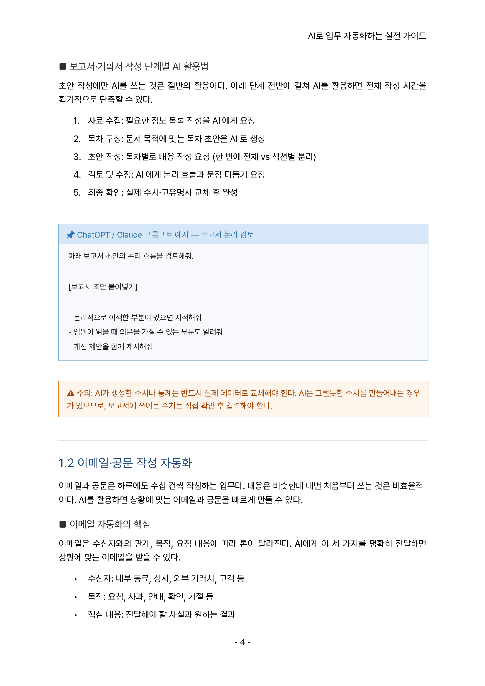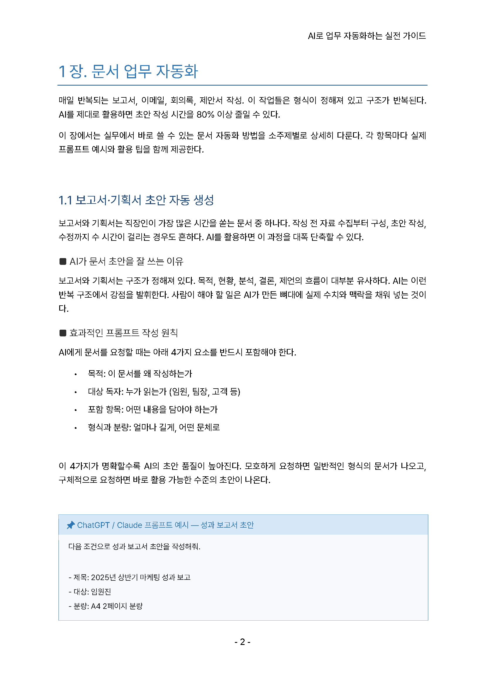 1) [문서업무] 보고서, 기획서, 이메일, 공문, 회의록, 제안서, PPT 작성 자동화