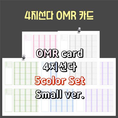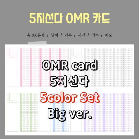 핑크, 그레이, 그린, 블루, 퍼플 다섯 컬러 모두 드리는 4지선다 OMR 카드입니다 :D A4 가로 버전으로, 한 페이지에 한 장이 들어가는 큰 사이즈입니다. 실제 시험에서 받는 OMR 카드같은 느낌을…